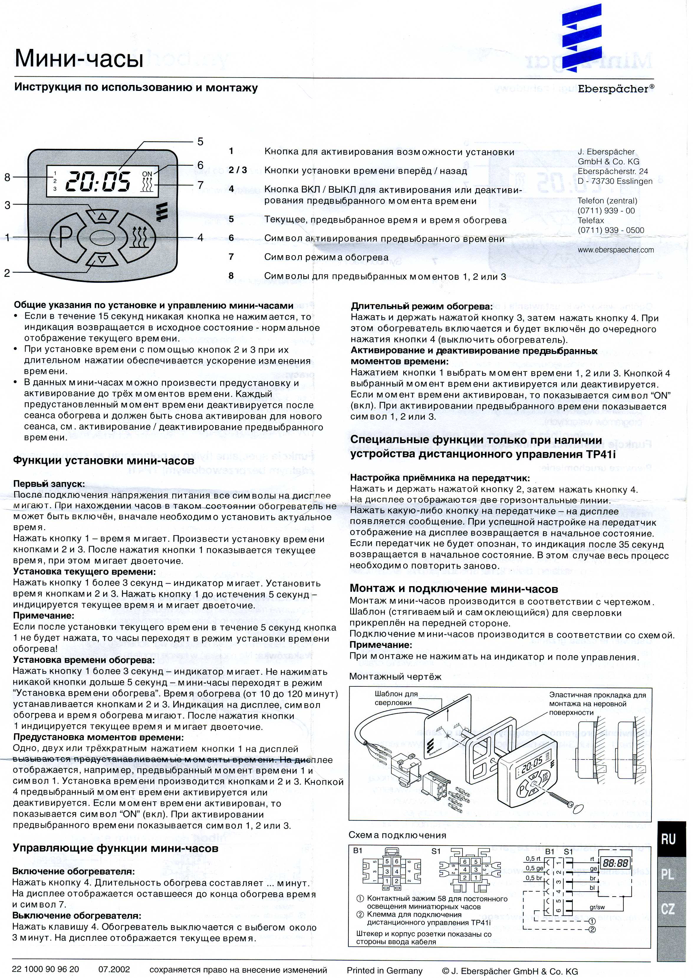 Для того, что бы нашим клиентам было удобно настраивать и эксплуатировать климатическое оборудование от компаний Eberspacher (Эберспехер) и Webasto (Вебасто) мы опубликовываем инструкции к отопителям и органам управления ими. Инструкции предоставлены на русском языке в формате pdf - поэтому их можно как просто просмотреть, так и скачать на свой персональный компьютер. Инструкции к отопителям компании EberspacherИнструкция к отопителю Eberspacher Airtronic D2 D4 Инструкции к отопителям компании WebastoИнструкция к отопителю Webasto Thermo 50 |